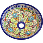Sie erhalten das runde MEX2 Aufsatzwaschbecken AVENTURA von uns, Ihrem Spezialisten für mexikanische Waschbecken in Europa. Es wiegt 2,0 kg und hat die Maße 35 x 12 cm. Natürlich ist es zu 100 % ein manuell gefertigtes Kunstobjekt. Darüber hinaus bieten wir Ihnen auch bunte mexikanische Fliesen und passende Bad-Accessoires.