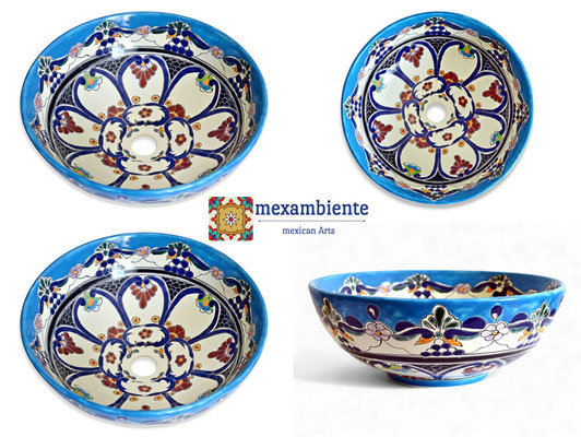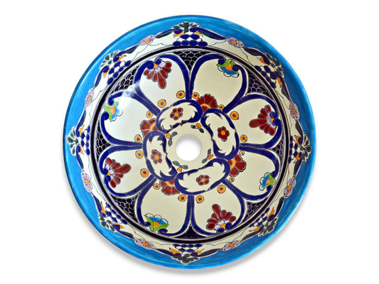 Das farbenfrohe Waschbecken TULUM ist eines der faszinierendsten Designs aus Mexiko. Es strotzt vor Leben und verbreitet beim Anblick sofort gute Laune und Freude.